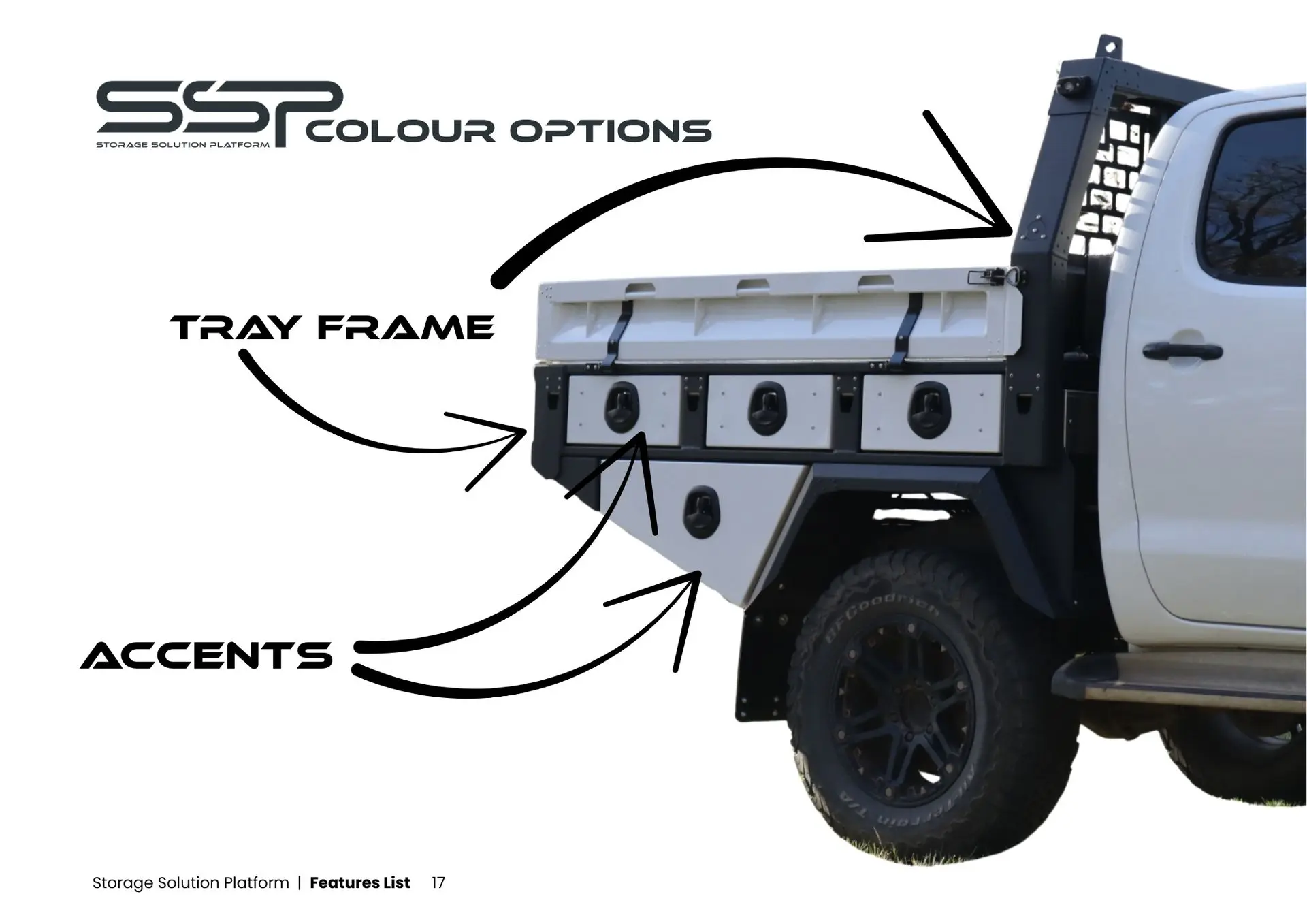 Our Signature Series Model, the Storage Solution Platform, offers the ultimate solution for those requiring quick, secure, and weatherproof access to their tools and equipment—without sacrificing tray carrying capacity.